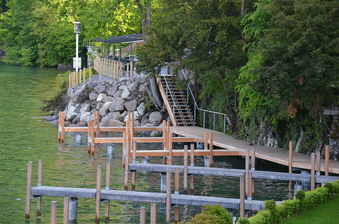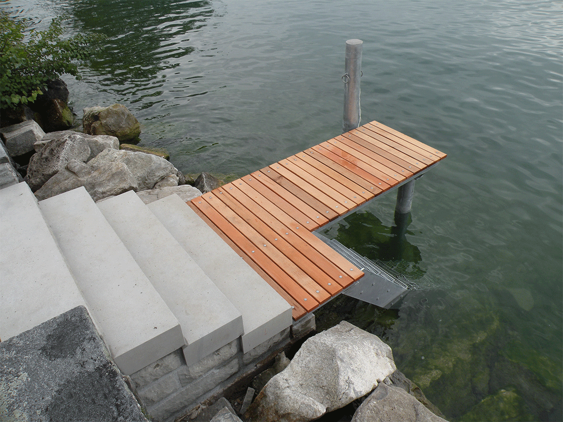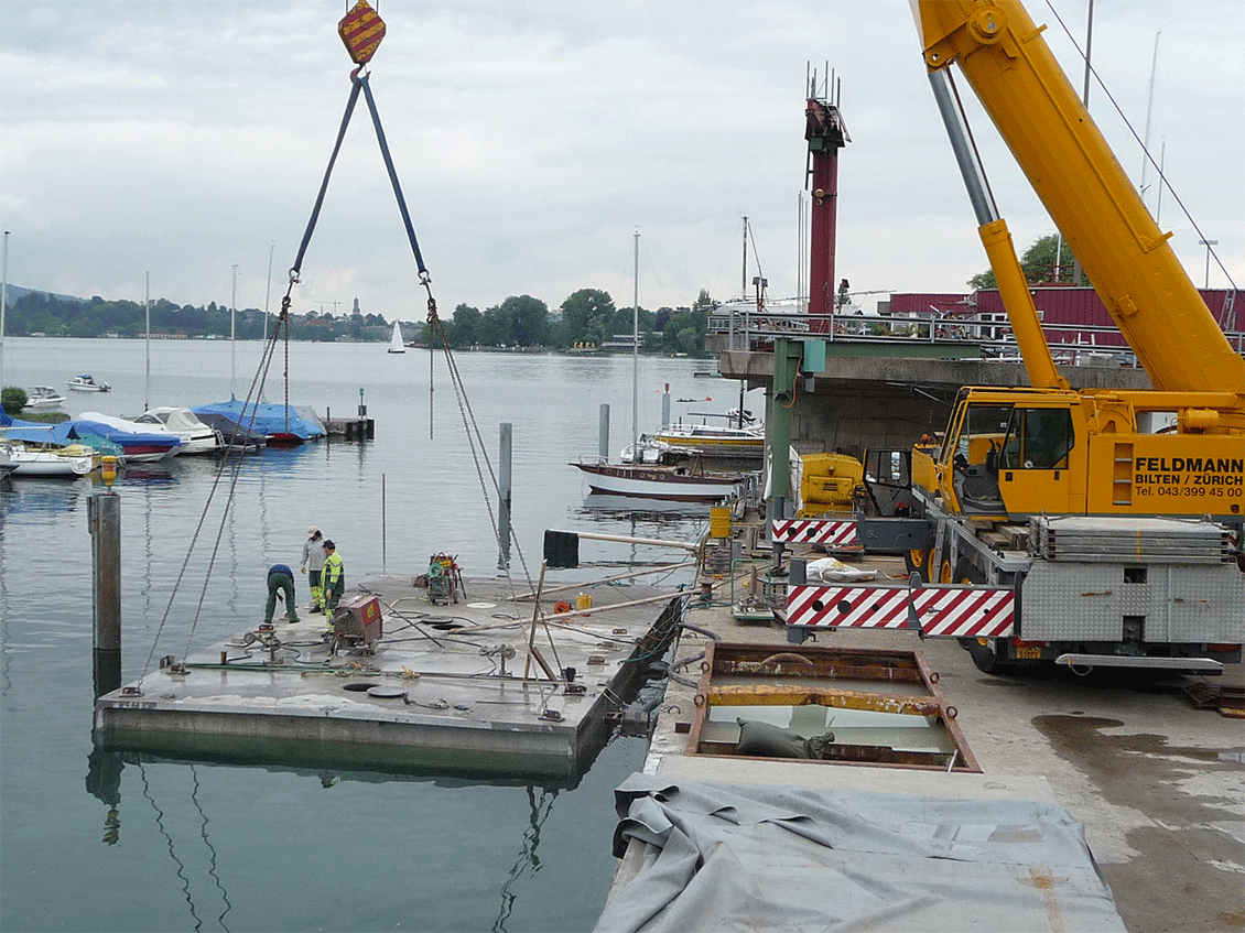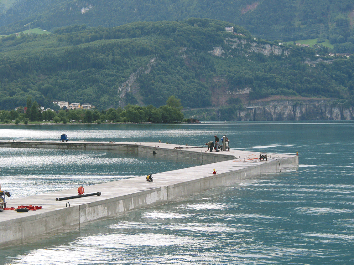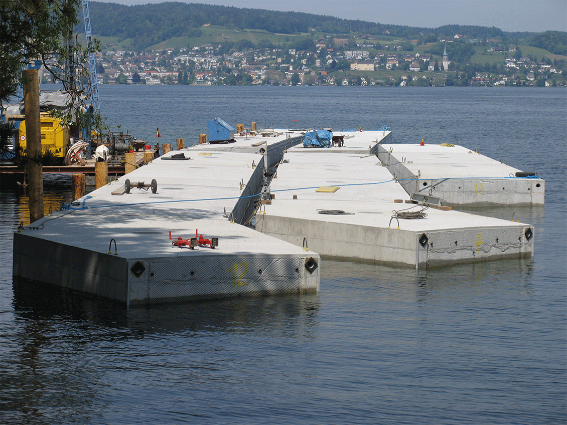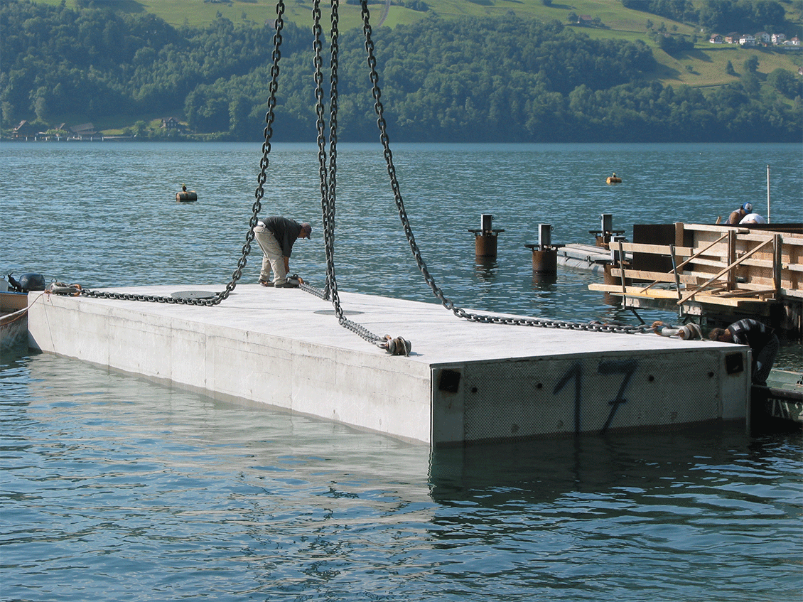 Our floating concrete piers, which have been tried and tested for decades, fulfill their function even with changing water levels. We provide you with comprehensive advice and are happy to incorporate our many years of experience into your hydraulic engineering projects.